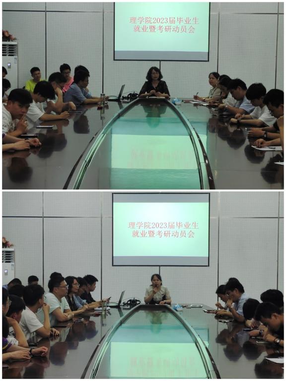 6月8日晚,理学院于济民楼C408召开2023届毕业生就业暨考研动员会,理学院院长陈小玲、党总支副书记李珺、学生工作办公室主任揭蕾,优秀博士青年教师代表万利佳、费荔枝、18级考研、就业学生代表、19级班主任及全体学生参加此次动员会,会议由党总支副书记李珺主持。