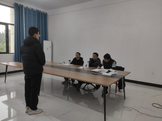 3月22日上午,理学院在济民楼305会议室组织开展了2023届考研复试模拟面试。本次模拟面试由应用统计教研室主任车金星教授、应用统计专业负责人张毓华副教授和专业教师张俊副教授共同担任评委,全体2023届研究生初试上线学生参加。