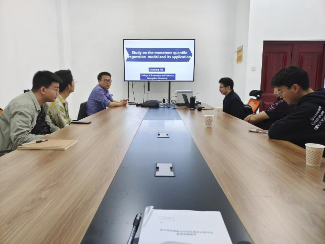 2023年04月13日上午,应理学院邀请,广州大学经济与统计学院“青年学术新锐”胡建明副教授来我院学术交流,在济民楼C305会议室为我校师生作题为“Study on the monotone quantile regression model and its application”的学术报告。学校相关专业教师及学生聆听了报告,理学院车金星教授主持报告会。