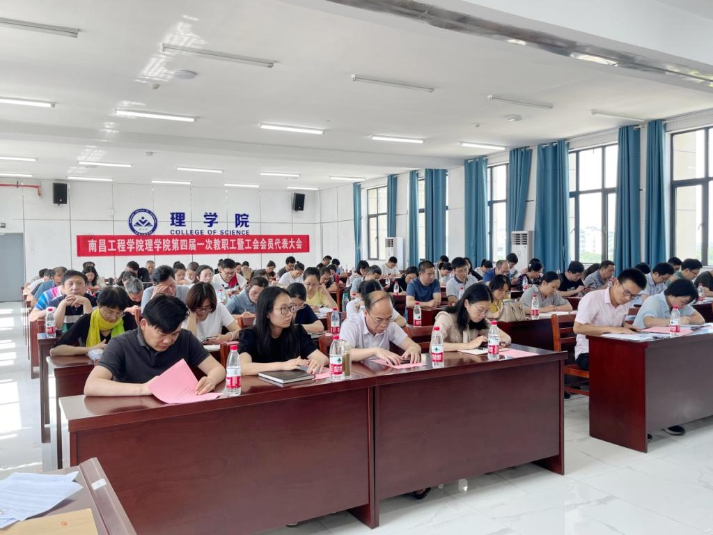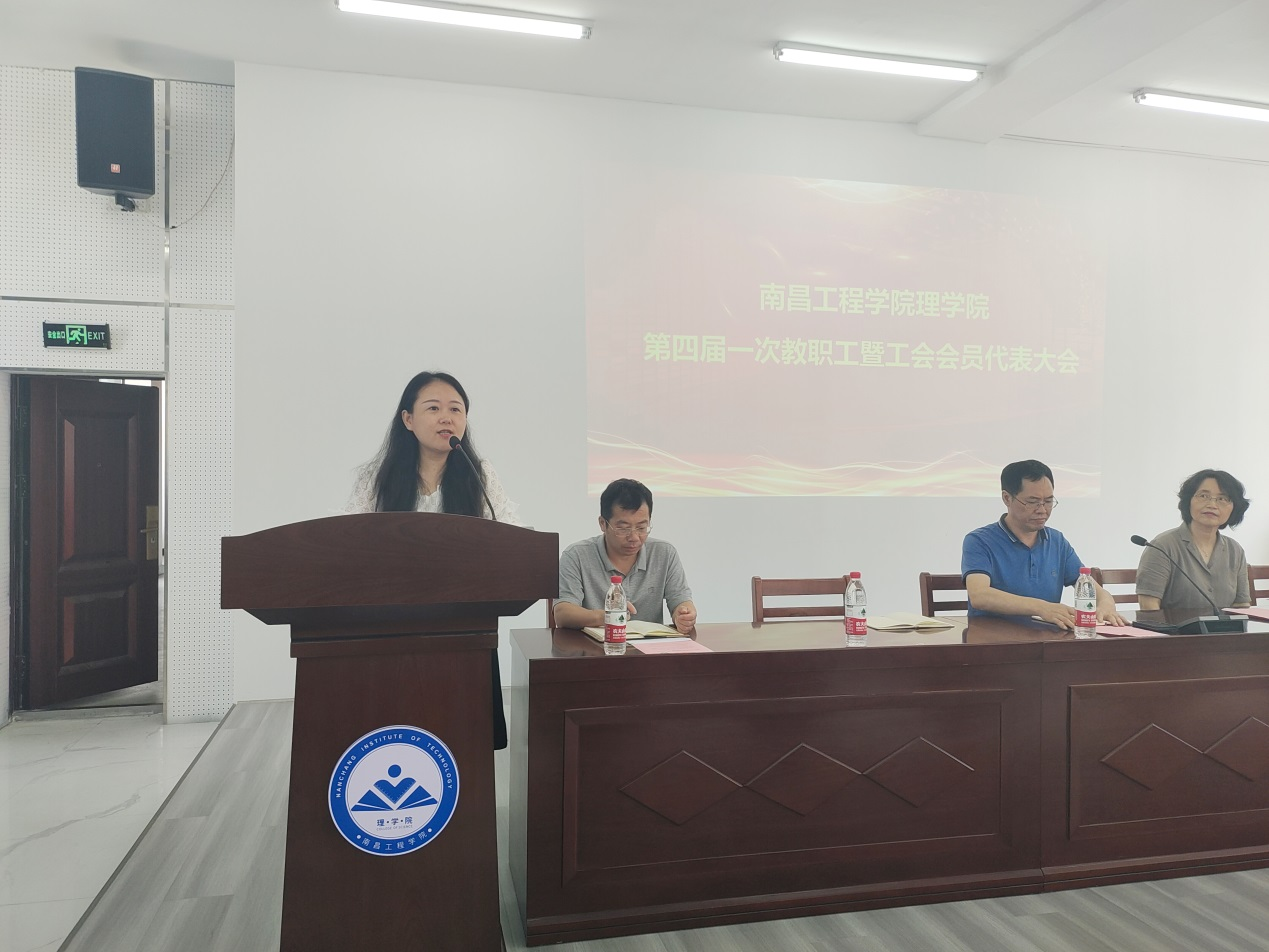 2023年6月27日下午,学院第四届教职工暨工会会员代表大会第一次会议在济民楼C408隆重召开。学院全体领导和老师共80余人参加会议。学院院长陈小玲作题为《勇于担当 谱写理学院内涵建设新篇章》的工作报告,学院党总支书记金本清主持会议。