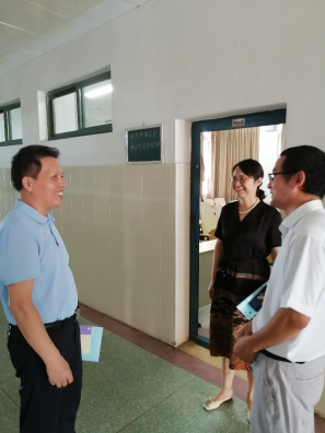 欧阳子龙认真聆听授课内容,细心观察同学们的精神风貌和学习状态。课后与任课老师作了沟通交流,肯定教学方式和效果,并提出了意见和建议。(文/谢佳娜 图/张晓航)