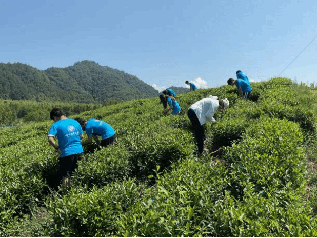 此次社会实践紧扣“精行俭德”的茶文化哲学与“绿水青山就是金山银山”的生态文明理念。同学们首先来到了清溪村茶基地。在这里,他们不仅欣赏到了满山遍野、绿意盎然的生态茶园,感受“绿水青山”的馈赠,还深入了解了茶叶的生态种植、科学采摘及初步加工过程。在茶农的指导下,同学们亲手采摘鲜嫩茶青,体会从自然中获取“金山银山”。