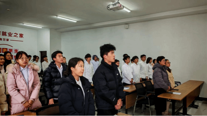 2026 年1月5日,经济贸易学院、理学院2025年下半年新团员入团仪式在济民楼B206如期举行。理学院团委书记揭蕾、经济贸易学院团委书记臧秀娟参加仪式,新发展团员、老团员代表齐聚一堂,共同见证这一庄严时刻。