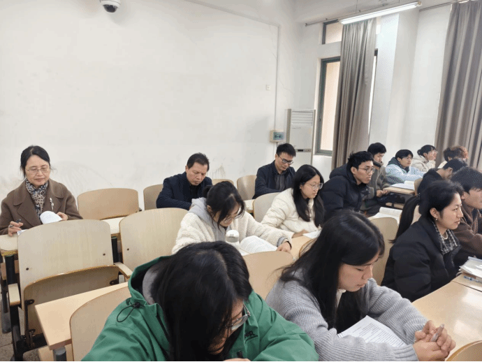 课上,欧阳子龙全程专注聆听,认真记录授课内容、教学方法设计及师生互动细节,重点关注案例与理论结合度及学生听课情况。