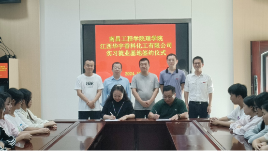 首先,2023级香料香精技术与工程专业本科生分别参观了企业文化展厅、精油产品加工车间等,全面了解企业文化及先进生产技术。其次,李珺向企业简要介绍了理学院的基本情况以及此次“访企拓岗促就业专项行动”的目的和意义,双方就发挥各自优势,推进人才培养、学生实习就业、产学研合作等方面进行了充分沟通和交流,理学院现场与江西华宇香料化工有限公司签订了实习就业基地协议,双方代表参加了授牌仪式。